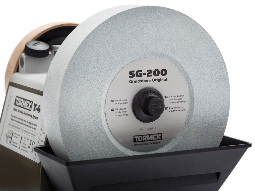 S Tormek T-4 Bushcraft můžete brousit různé outdoorové nože, lovecké nože, rybářské nože a sekery. Bruska je vybavena brusným kamenem Tormek SG-200 Original, který umožňuje širokou škálu brusných vlastností na jednom a tomtéž brusném kameni. Můžete snadno střídat mezi hrubším broušením zrnitostí 220 a jemnějším broušením, které poskytuje povrch ekvivalentní zrnitosti 1000. To znamená, že můžete jak obnovit zcela zničený nástroj a získat jej znovu jako nový, ale také snadno nabrousit nástroj, který je jen tupý.