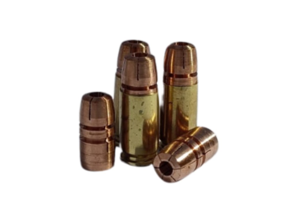 Patented expansion system with plunger allowsreliable expansion even over long distances, which distinguishes them from standard monolithic projectiles, which often do not achieve consistent deformation.